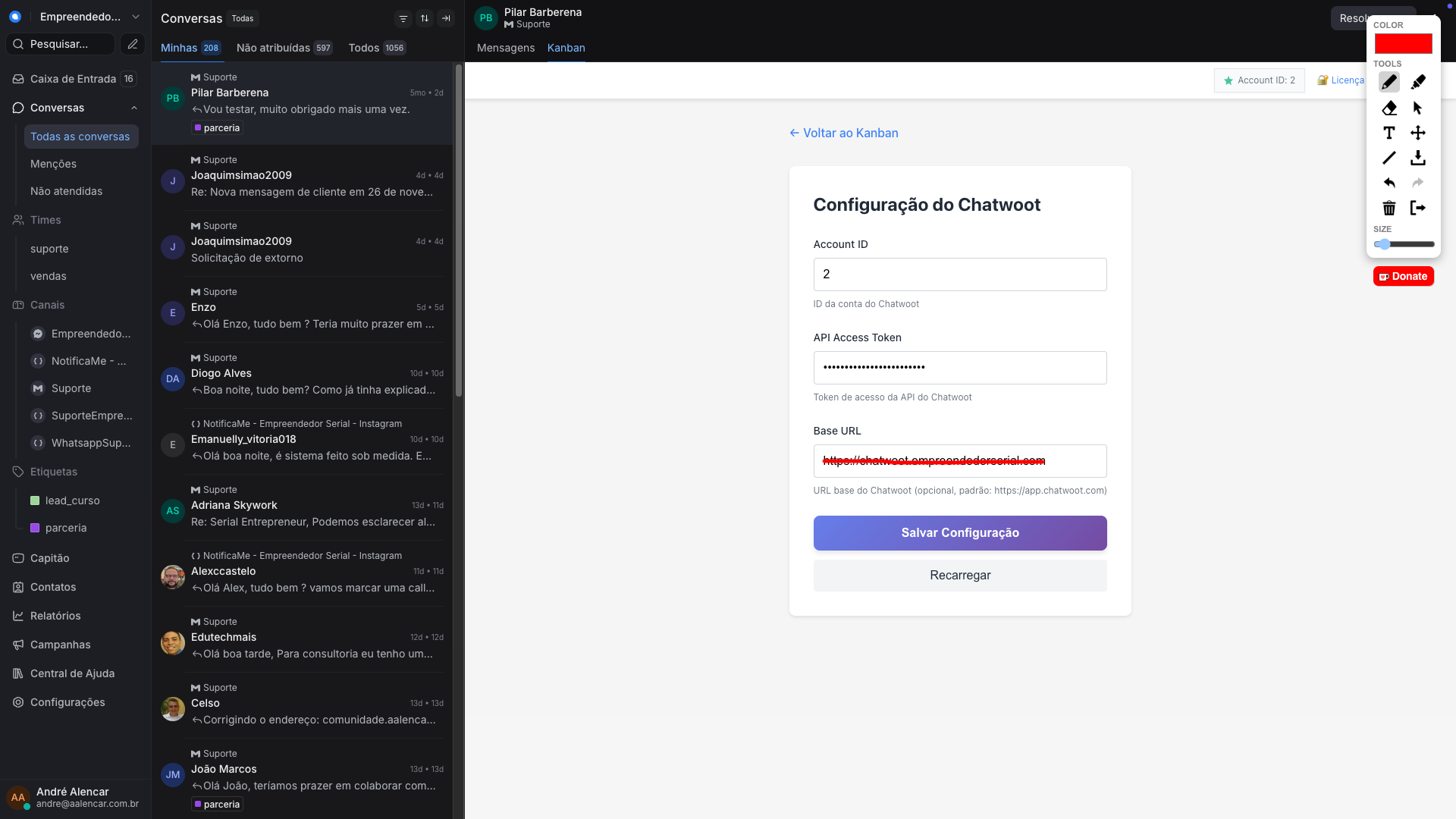 - Drag and drop para mover conversas entre colunas com facilidade.